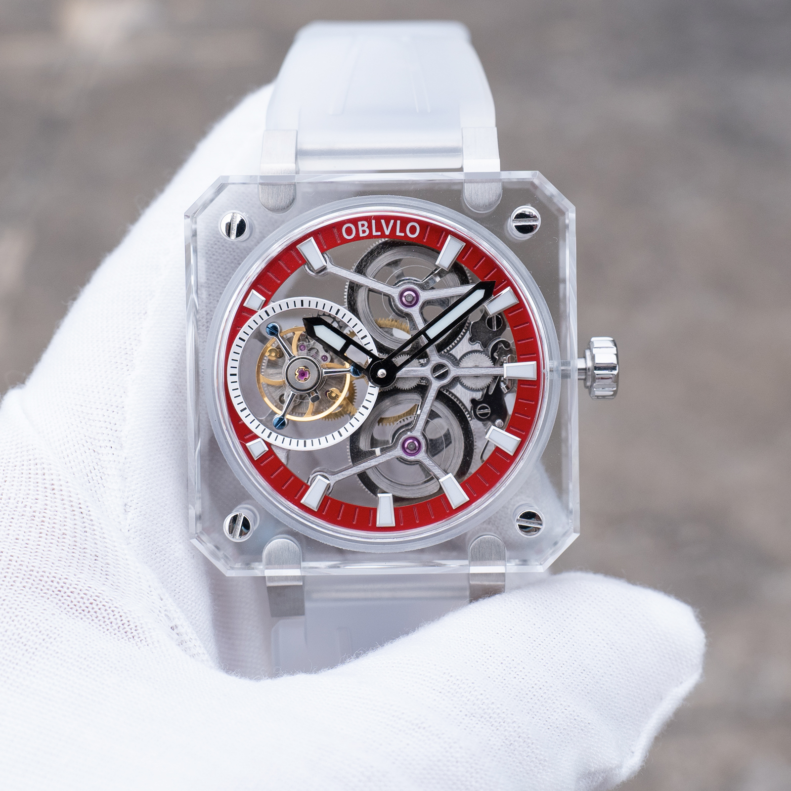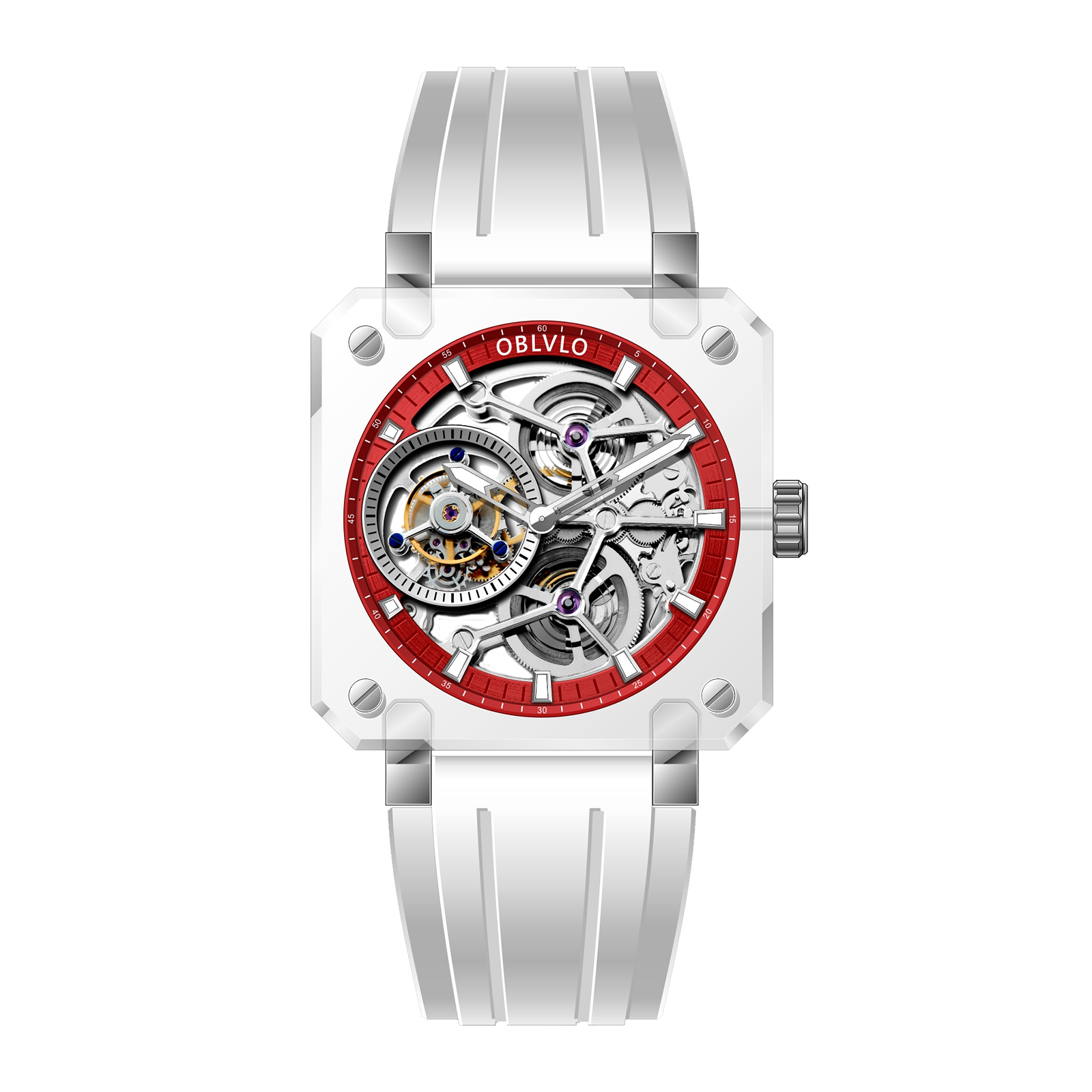 BR Series, 43mm,White Rubber Strap ,Red Dial ,BR-TB-IRWR