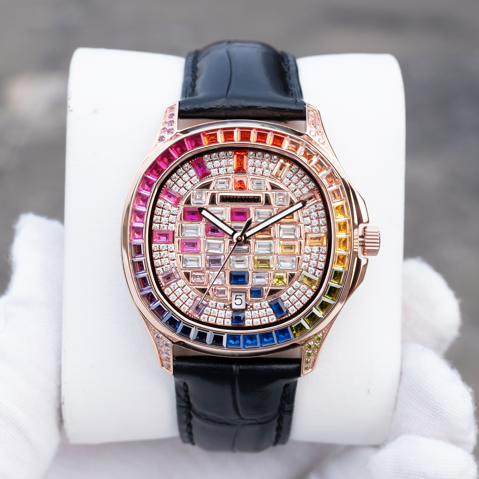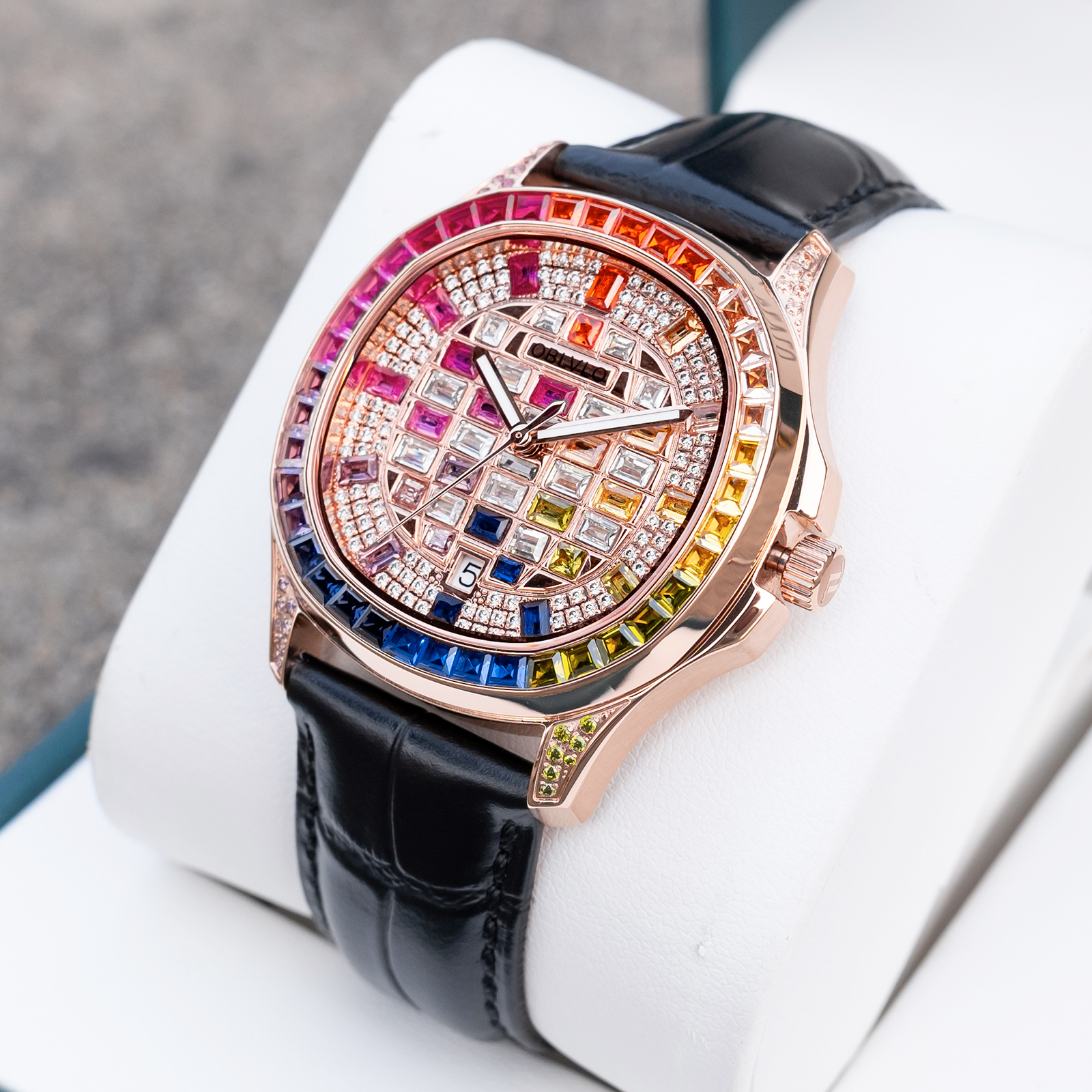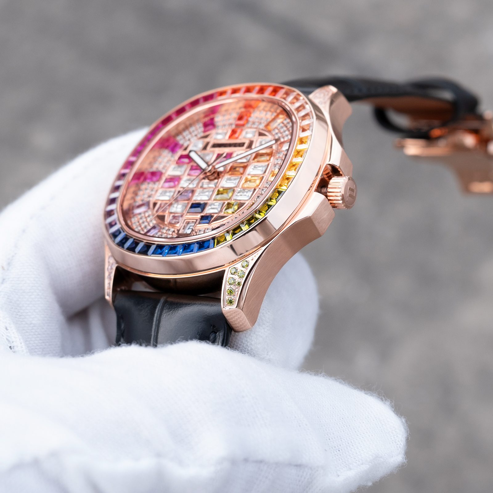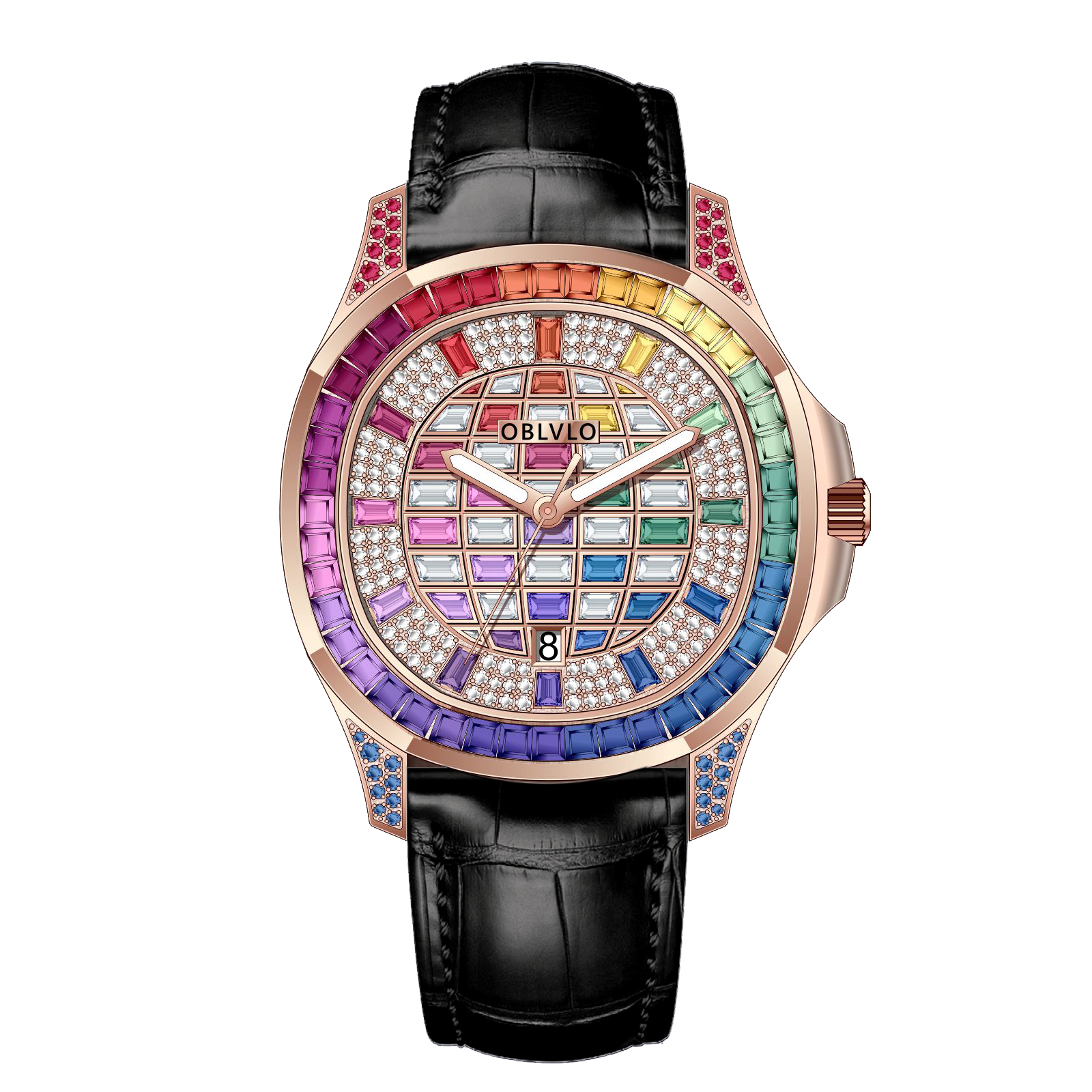 FM Series,40mm,Black Leather Strap ,Rainbow gradient Dial FM-DSL-PCBL