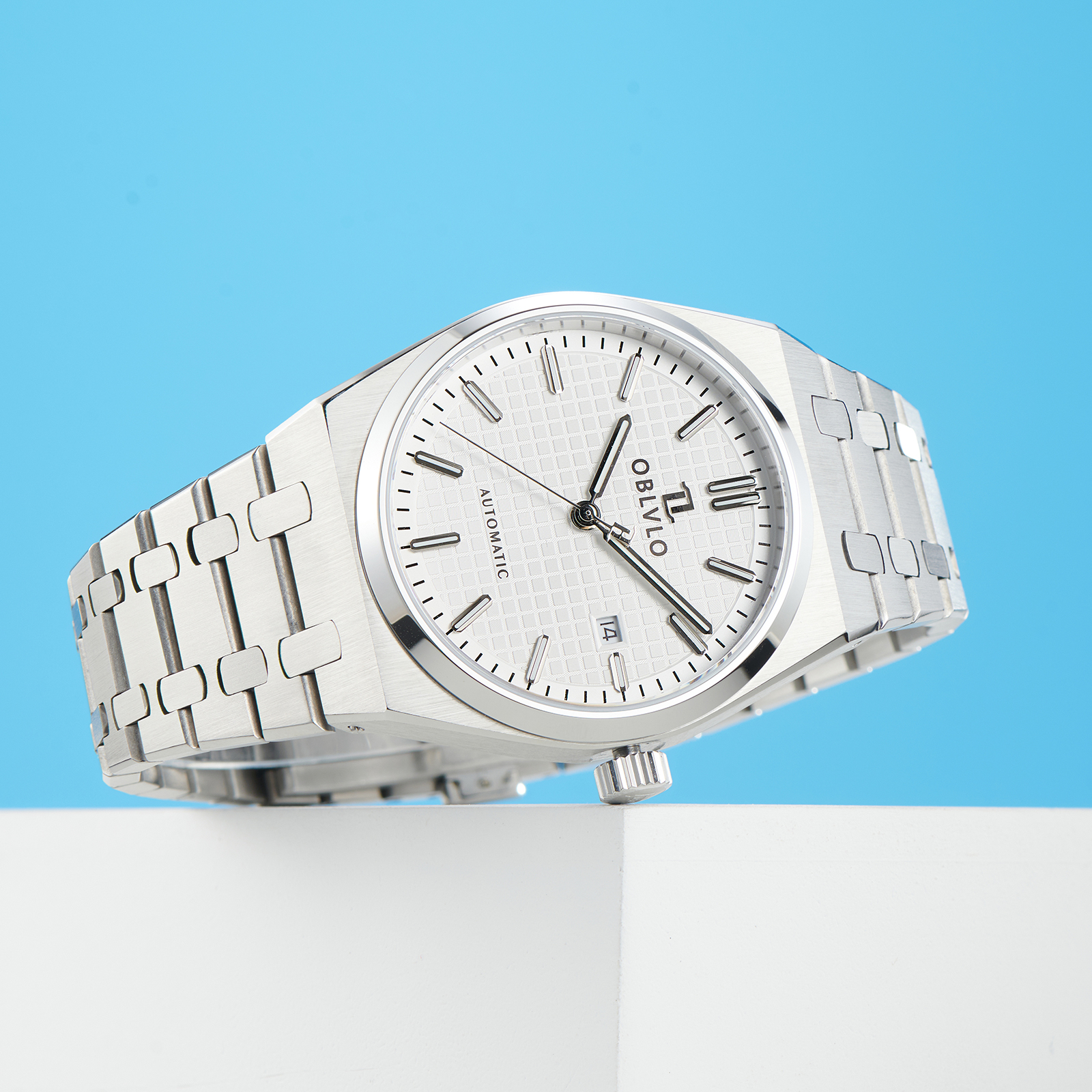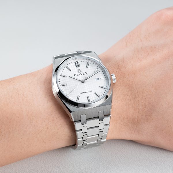 OBLVLO Top Brand Two Tone Stainless Steel Automatic Watch Luminous Waterproof Transparent Mechanical Movement Sport Watches TM-SIM-YWYS