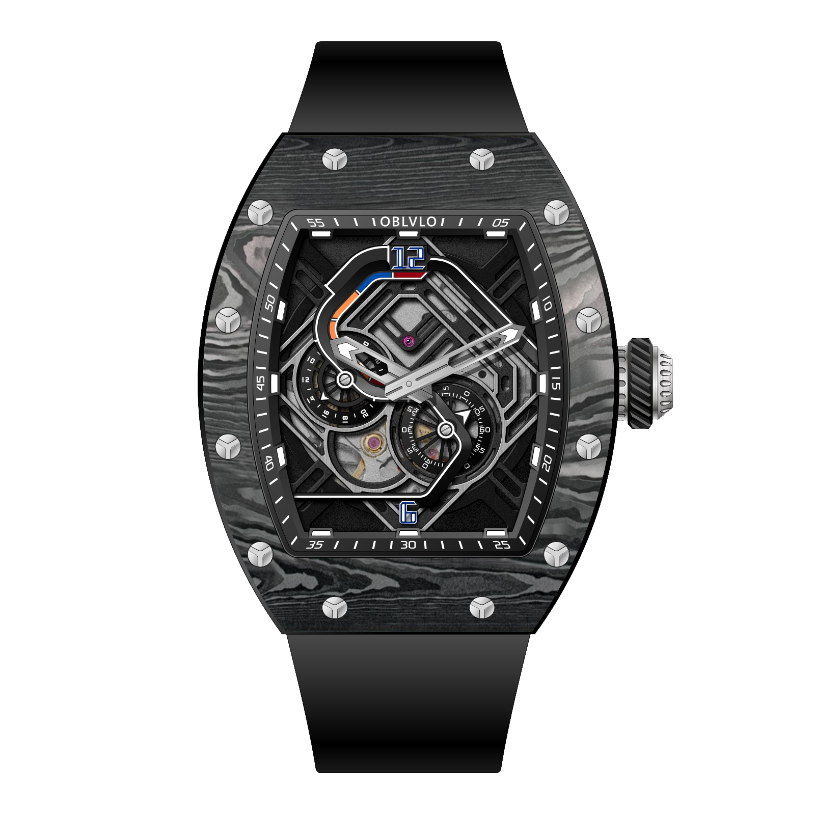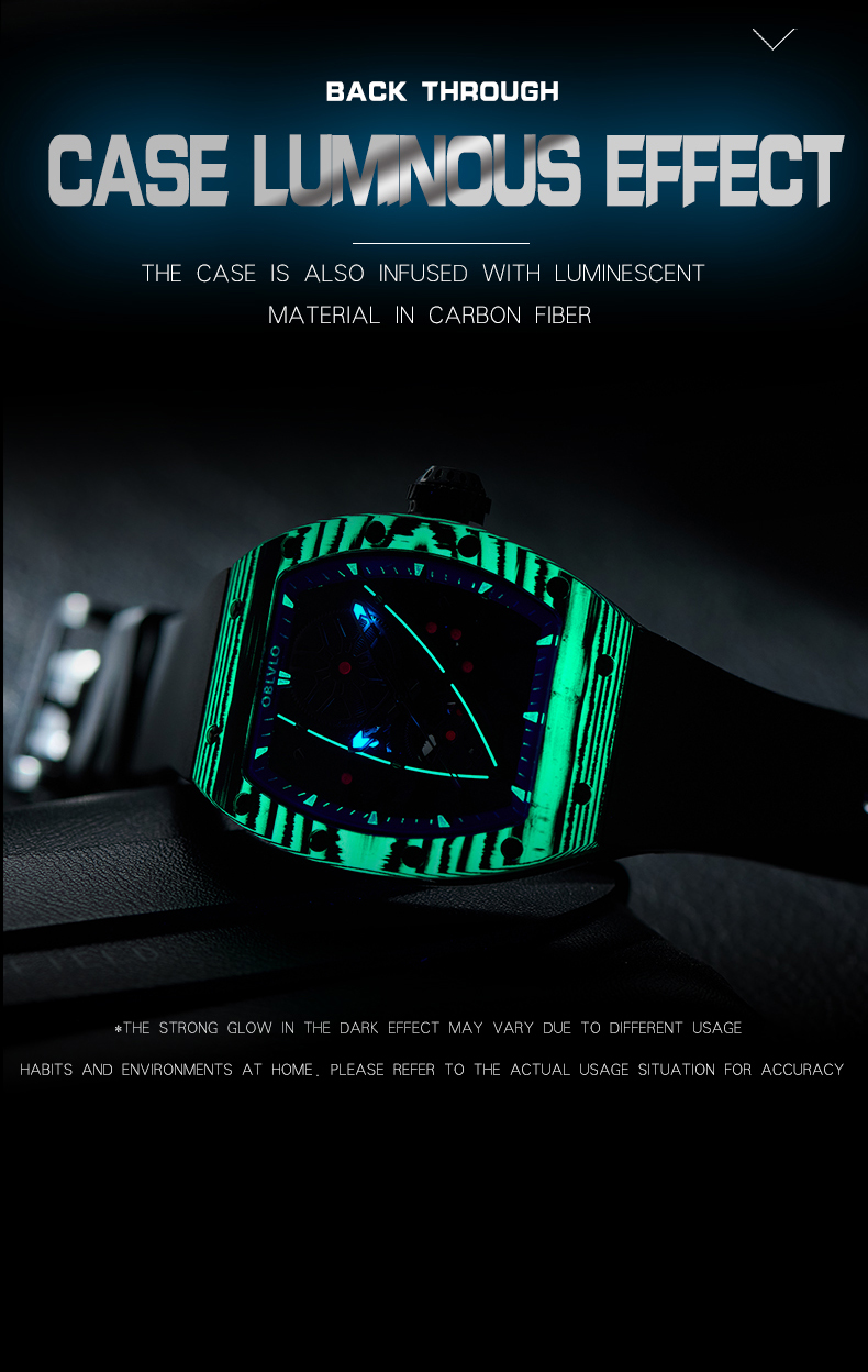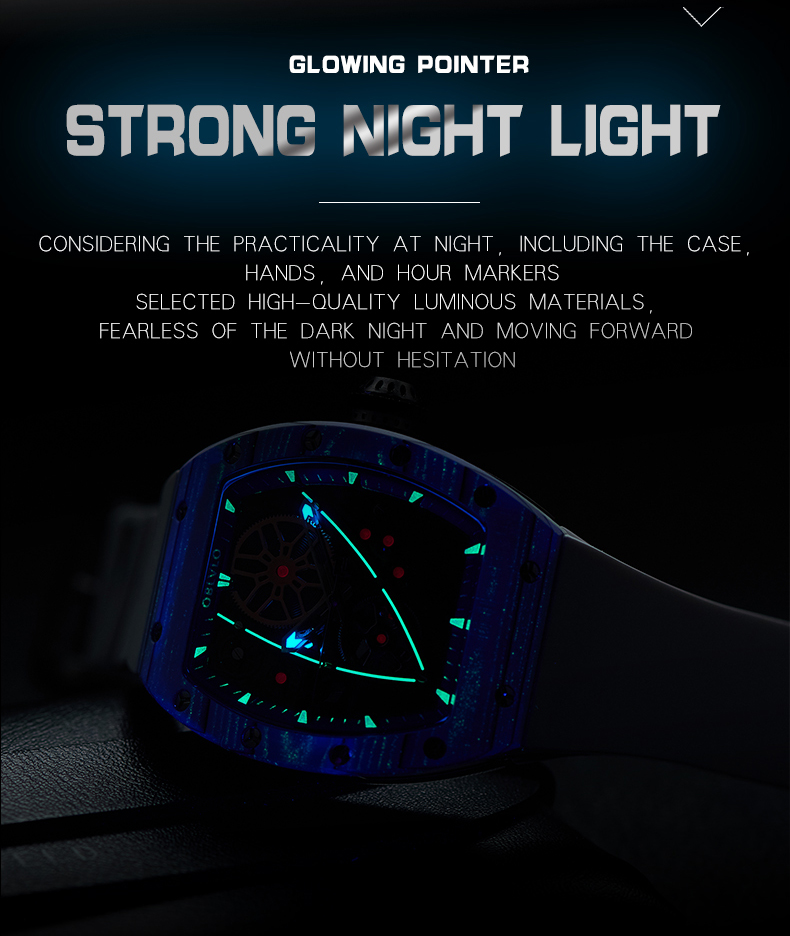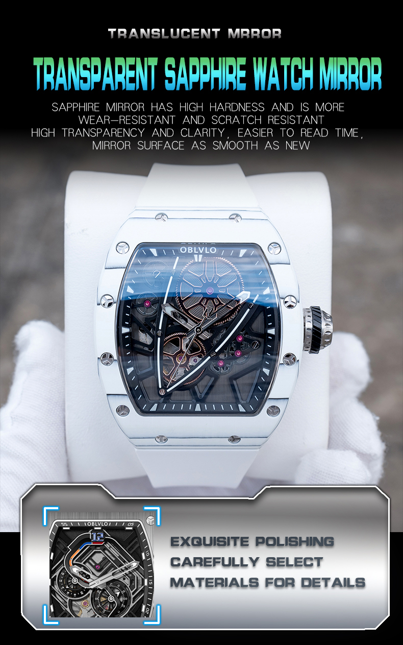 • OBLVLO Men Sport Luxury Watch Square Skeleton Watch Steel Mechanical Watch Rubber Strap Watches GM-BBBR $298.00