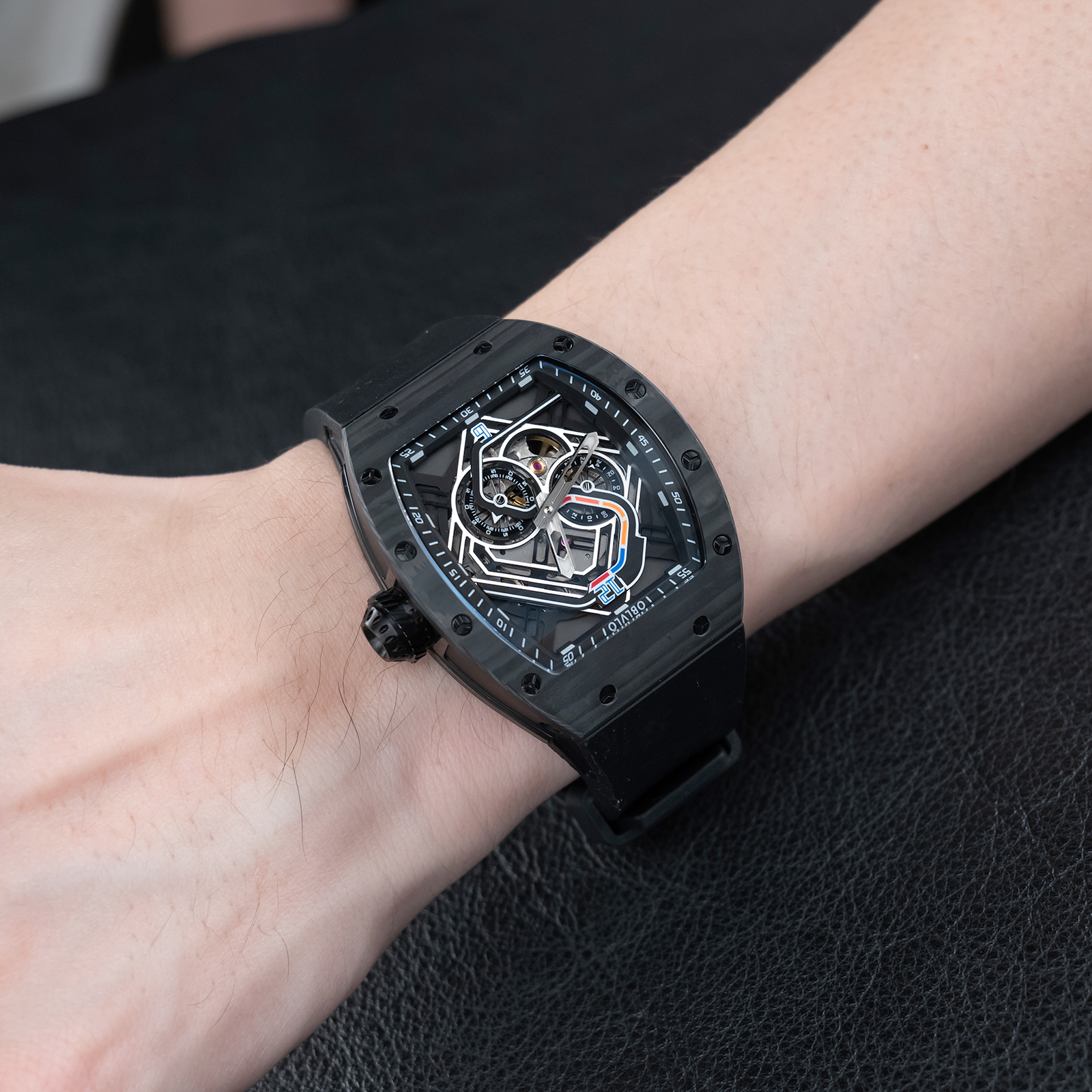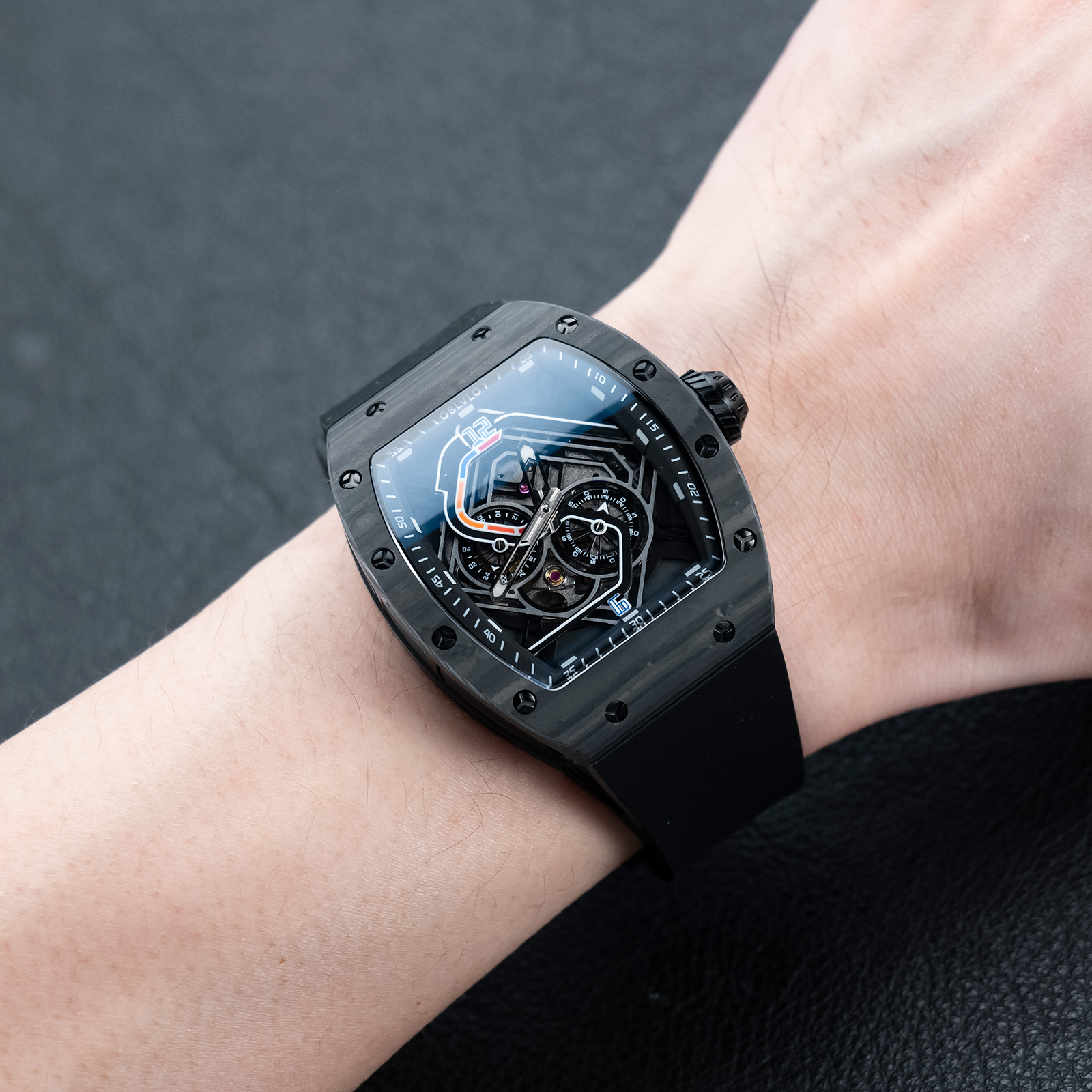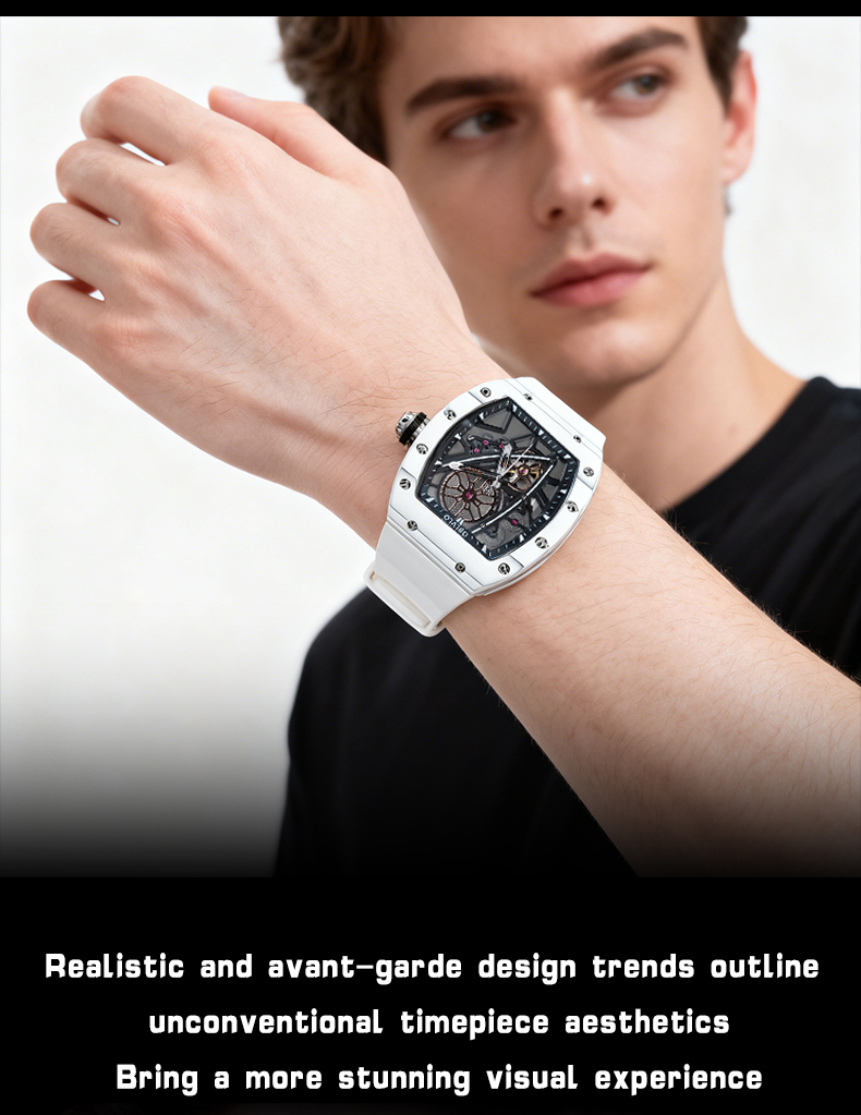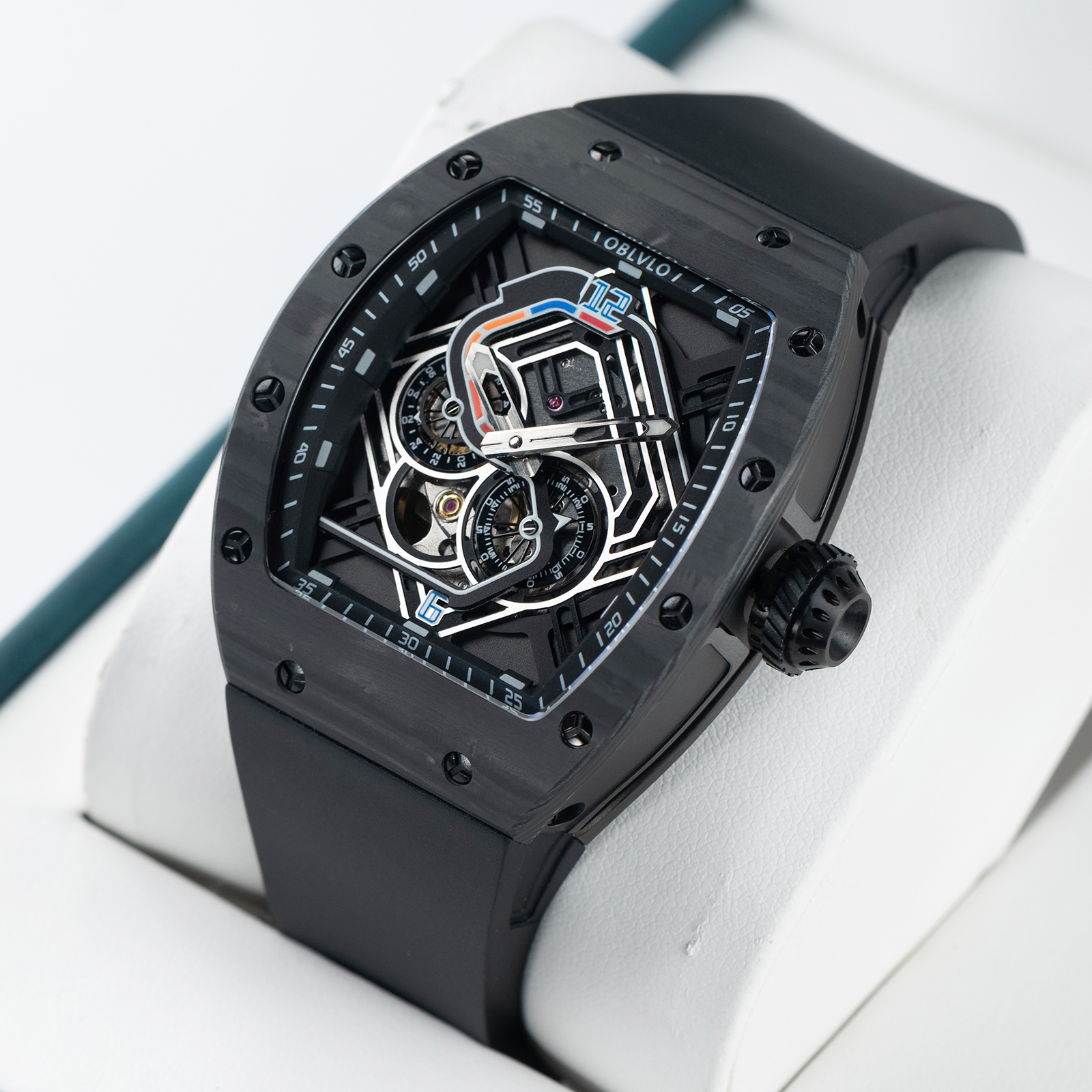 • OBLVLO Men Sport Luxury Watch Square Skeleton Watch Steel Mechanical Watch Rubber Strap Watches GM-BBBR $298.00